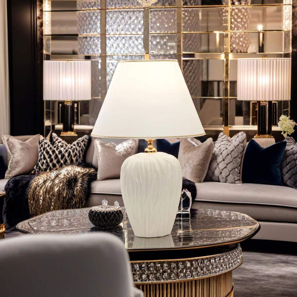 Luxuriöse Tischleuchte in feinem Weiß und Gold