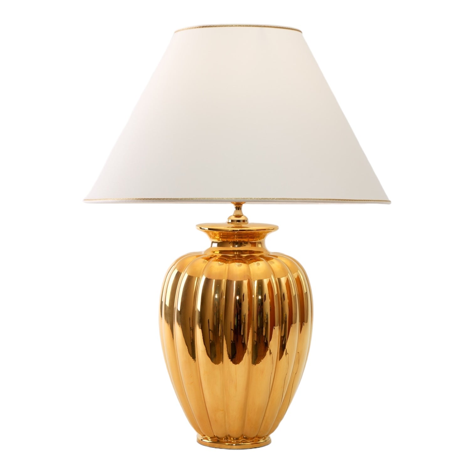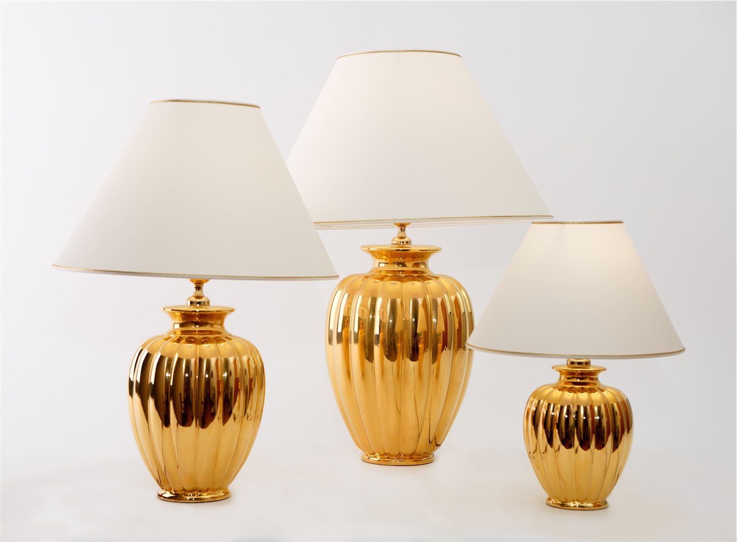 Die Palazzo Keramik-Tischleuchten von Lunatre werden in Italien in präziser Handarbeit gefertigt. Jedes Exemplar ist somit ein mit Hingabe produziertes Unikat. Immerhin wird auch jede einzelne Lampe wird mit einer 24-Karat-Gold-Veredelung versehen - das entspricht einem Feingehalt von 99,9%.